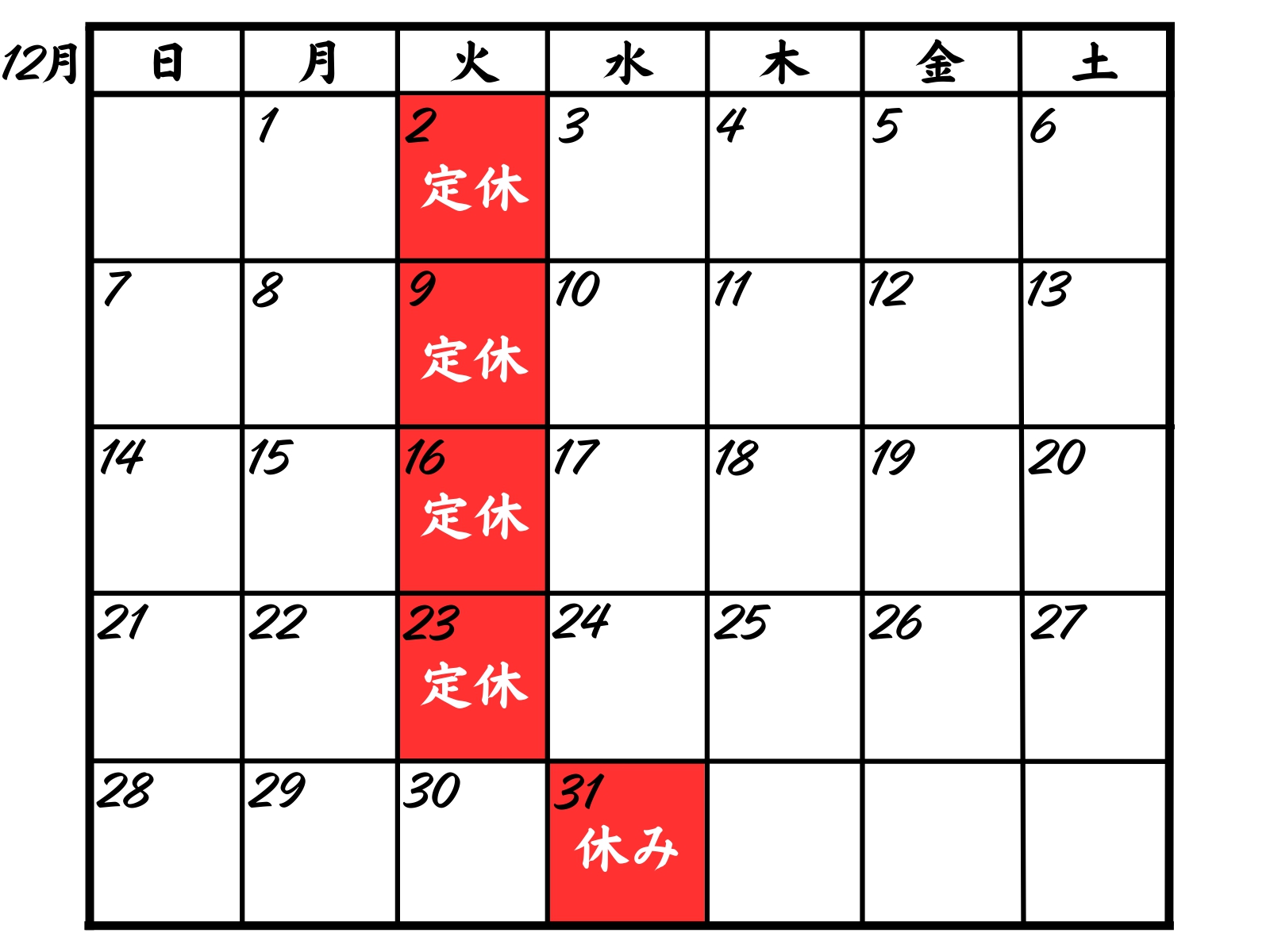 日頃より格別のおひきたてを賜り厚く御礼申し上げます。 当店の12月と2026年1月の営業並びに休日のご案内をさせていただきます。